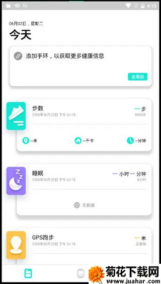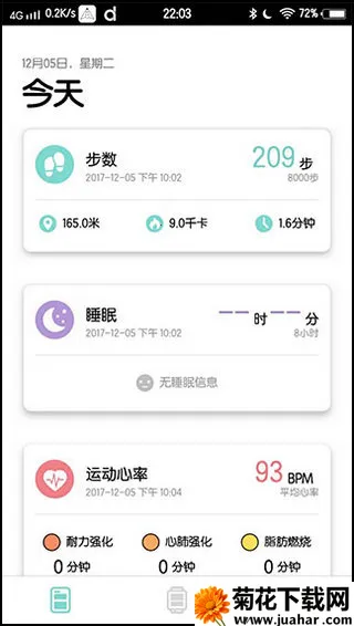 2、进入主界面,可看到个人步数、睡眠情况、及跑步情况