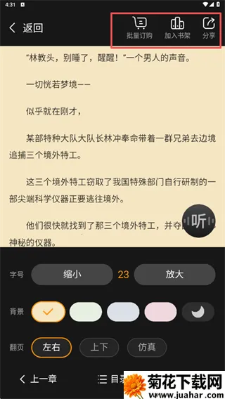 2. 支持自定义阅读设置,有无广告干扰的精致排版体验,多样手势操作、清晰目录导航,还有自定义字体背景、日夜阅读模式等。