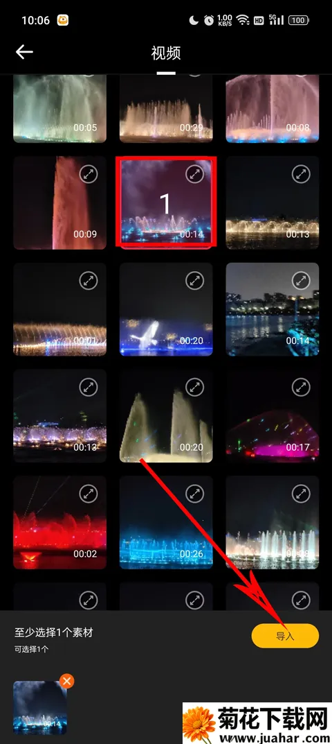 2、首先进入到视频剪辑,在相册中导入一个素材,选择后进入导入;
