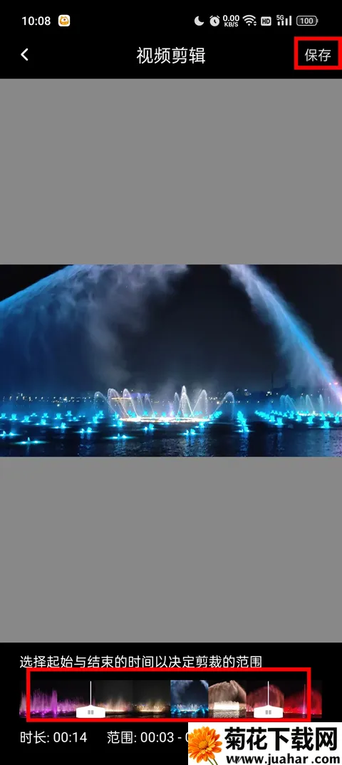 3、然后选择你需要的部分进行,在下方选中你需要的视频部分,然后点击保存即可,这样一个视频就剪辑完成了;