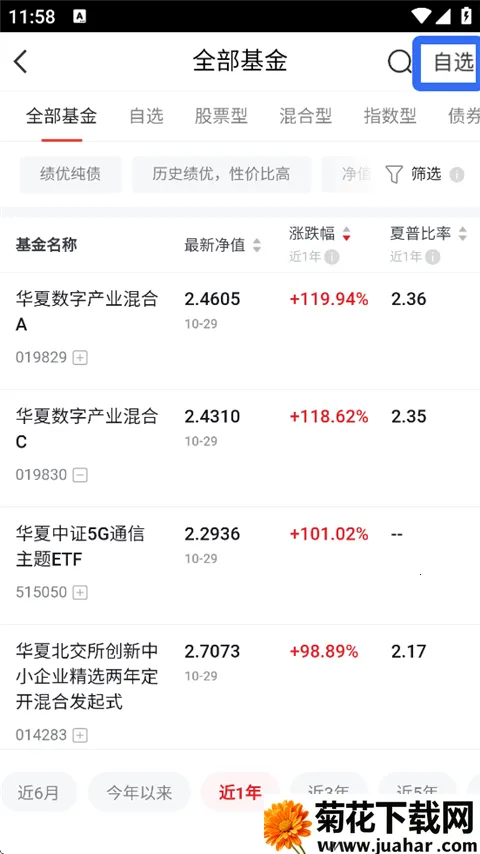 2、用户可以选择基金类型分类查看。