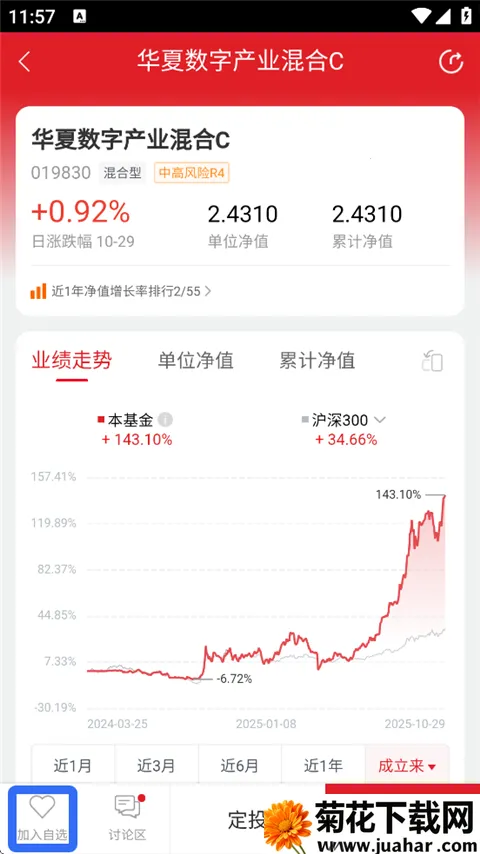 3、点进基金详情页,点击【加入自选】即可。