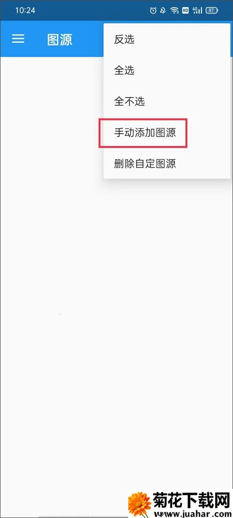 3、这里会显示所有的图源网址,点击右上角的三点图标并点击手动添加图源。