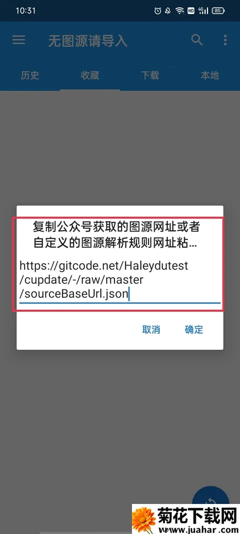 1、同样还是打开app,这时会弹出一个复制公众号……等等提示,将第三方图源网址复制到这里。