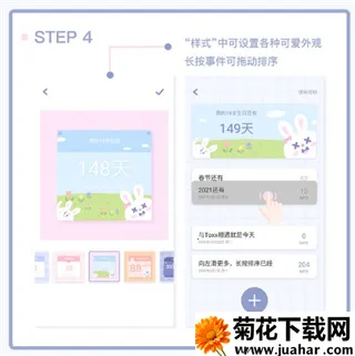 “样式”中可设置各种可爱外观,长按事件可拖动排序。