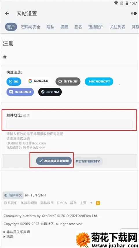 米坛社区官方正版的下载方式很简单,用户可以在应用商店中搜索“米坛社区”,然后点击下载并安装。安装完成后,用户可以打开app,点击左上角的三横图标进入个人中心界面,找到设置按钮并点击它。在设置界面中,用户可以进行注册、登录、修改密码等操作。米坛社区官方正版的注册方式也很简单,用户只需要输入邮件地址并点击下方的发送验证码到邮箱,然后根据邮箱发来的验证码进行复制粘贴,输入用户名和密码,最后点击下方的注册按钮就可以了。