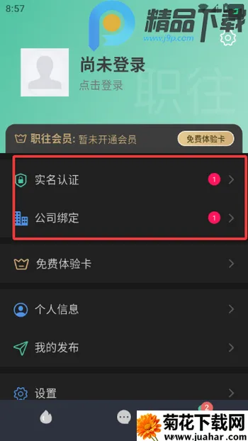 2、进入软件之后需要先绑定公司和进行实名认证才能正常使用软件