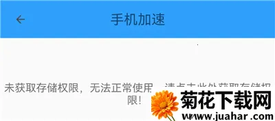 2、首次加速软件需要获取存储权限,点击文字跳转页面同意获取。