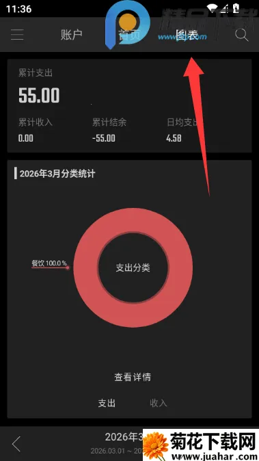 1、点击图标可以以饼状图查看支出分析