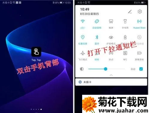 设置完成后就可以使用了。按照我之前的设置,当我双击手机背部时就会打开下拉通知栏。