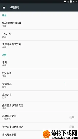 点击顶部的【无障碍服务被禁用】的提示。在打开的“无障碍”页面中点击底部的【Tap,Tap】,然后开启开关,在弹出的提示框中点击【确定】;