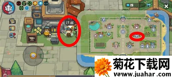 在铁匠上方,有个凉凉酒馆,需要进去以后,右上角有个卡片爱好者, 通过石头剪刀布,可以与其博弈交换卡片。