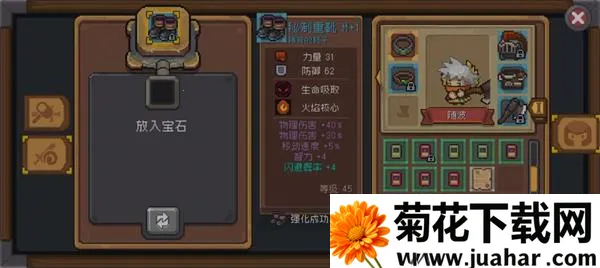 女铁匠,勾选左侧第二栏,放入装备,磨炼石