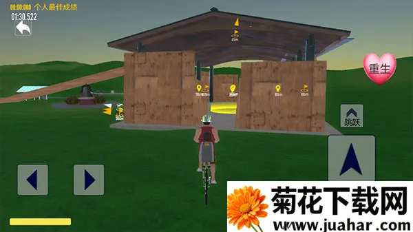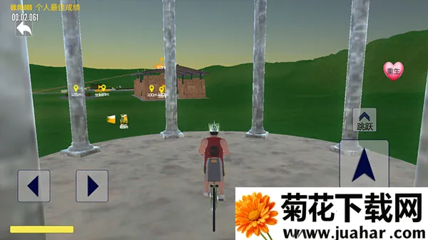 5、玩家的目标就是驾驶自行车到达黄色光标的位置,即目的地。