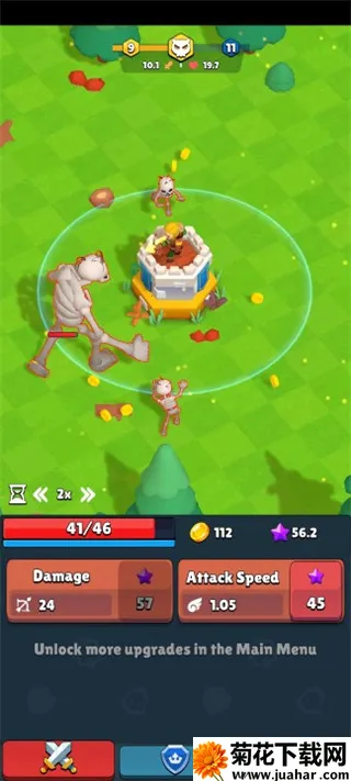 2、在这个魔法世界中,你需要不断的击败邪恶的怪物,并通过升级弓箭手的攻击伤害,击败更加强大的怪物;