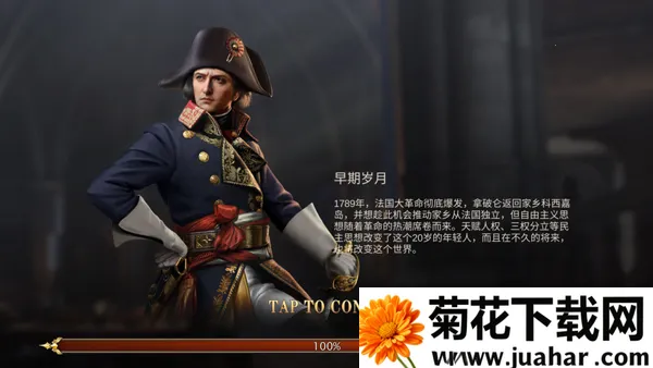 1、首先打开拿破仑战争手机版,点击屏幕开始,游戏已成功汉化,方便玩家更好地理解游戏剧情玩法;