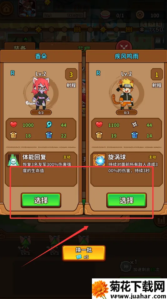 1、在游戏初期需要着重收集相同角色进行合成进化,通过集齐三个相同忍者能够实现升星突破。