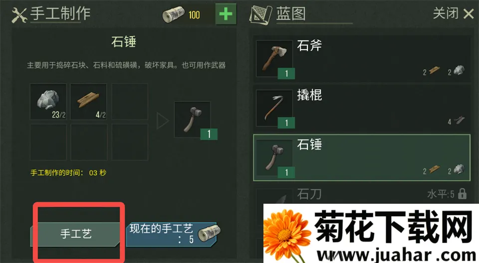 3、选择需要制作的物品,点击左下角【手工艺】开始制作。