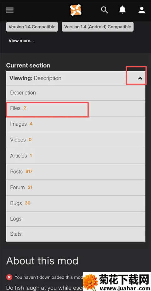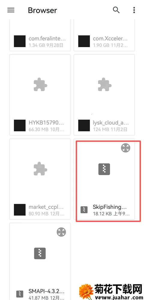 11、找到下载mod的地方,点击Skip fishing文件。