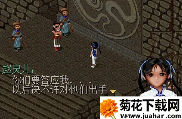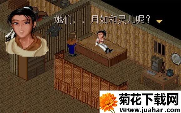 4、跟著灵儿走入房子後到处搜宝箱再到左边房间拿药!出门遇见姥姥 被强破娶妻..然後计画逃走. .逃回家後把紫金丹拿给婶婶吃,逍遥丧失记忆..夜晚利用密道出门,在门口遇见苗人首领,说了一堆话後出门, 到秀兰家得知秀兰父亲气喘病发作..至隔壁洪大夫家敲门请他治病解决後从西北边出去到山神庙学习剑法..看了一段精彩的动画後回家..