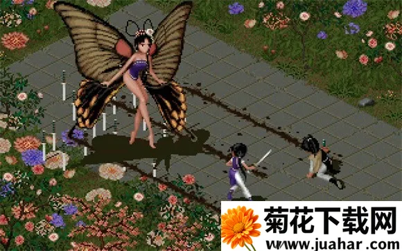 24、打败两名士兵後再打败假的国王..解决後请把自己的体力、真气全补满最好记录...走出後到中间水池中与拜月教主战斗(钱都用乾坤一掷丢了..)把那家伙干掉後就可以欣赏『悲惨』的结局了。