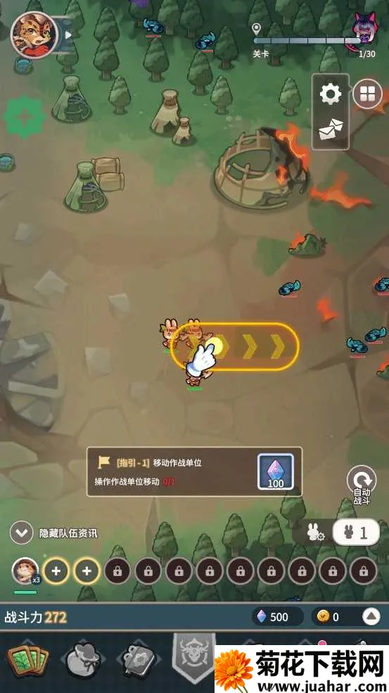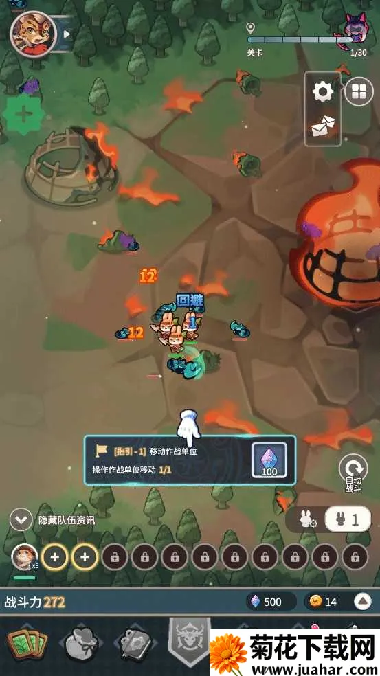 2.拖动队伍进行移动,寻找敌人开始战斗