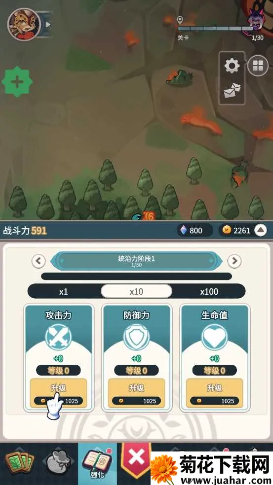 5.使用金币强化攻击力,防御力,生命值等角色属性