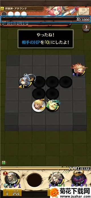 3、当玩家在棋局中将对方一条线上的棋子包住时,角色便会发动攻击,对方掉血。