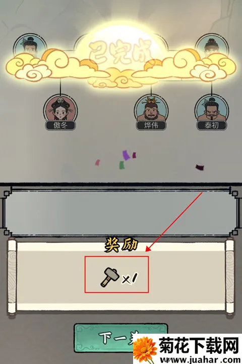 5、所有圆框正确填入就可以通关并获得锤子奖励啦。